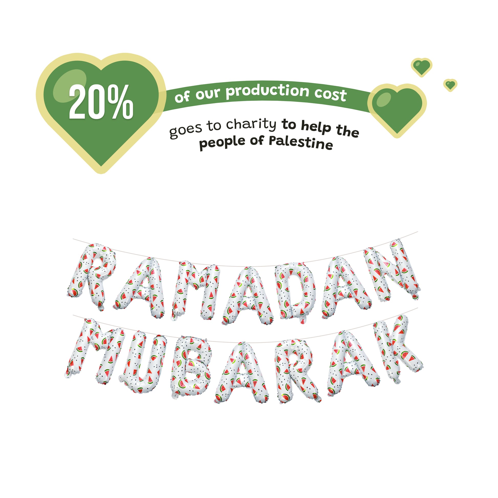 Cet ensemble est bien plus que de simples décorations : c’est une célébration du don et de la solidarité. Inspiré par la symbolique de la pastèque, emblème de résilience et d’unité, 20 % des coûts de production de cet ensemble sont reversés à des associations qui apportent une aide à la Palestine. En choisissant cet ensemble, vous créez une atmosphère de Ramadan chaleureuse chez vous tout en ayant un impact concret sur la vie de ceux qui sont dans le besoin.